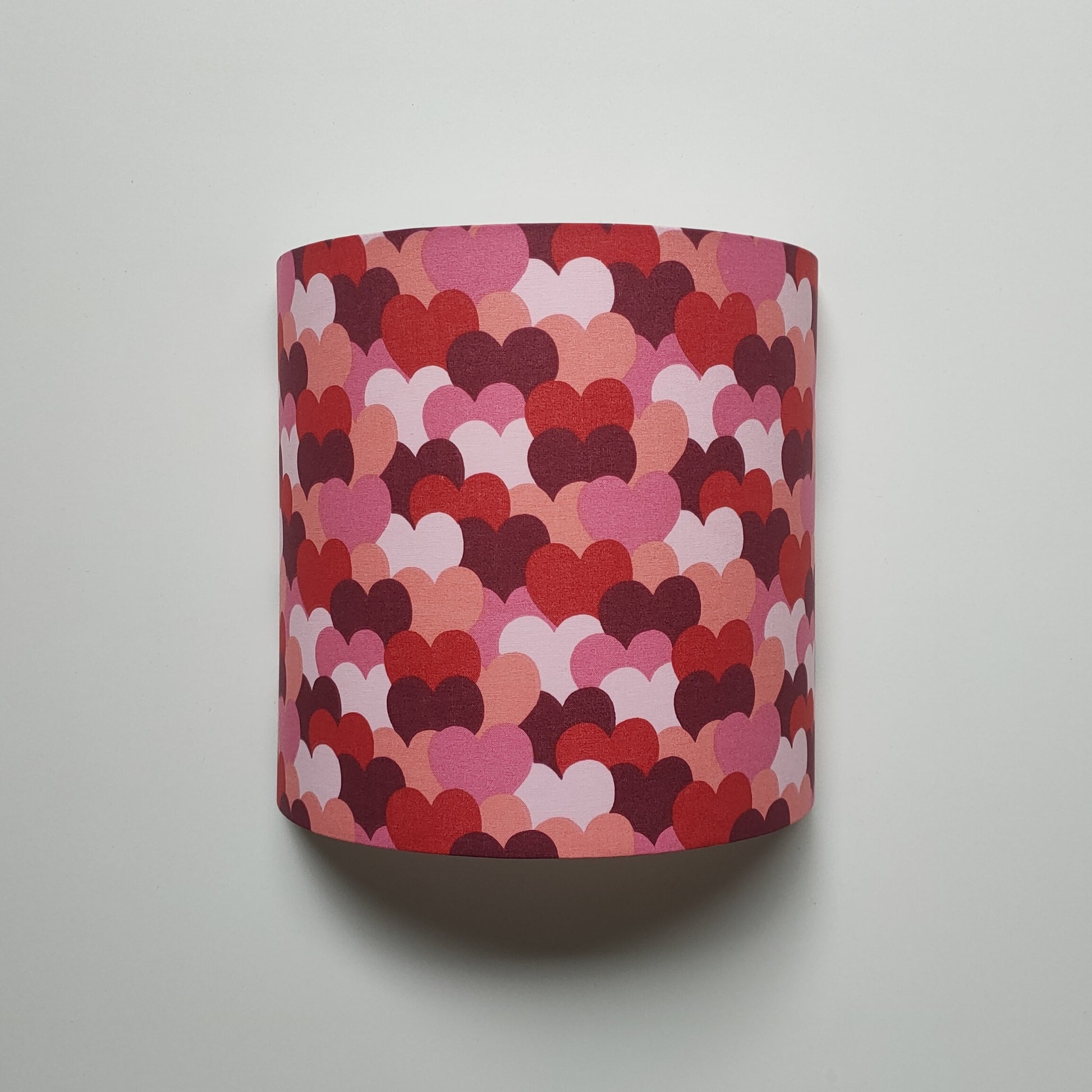 • Tissu en 100 % coton imprimé certifié OEKO-TEX Motifs superposition de coeurs roses/rouges/violets