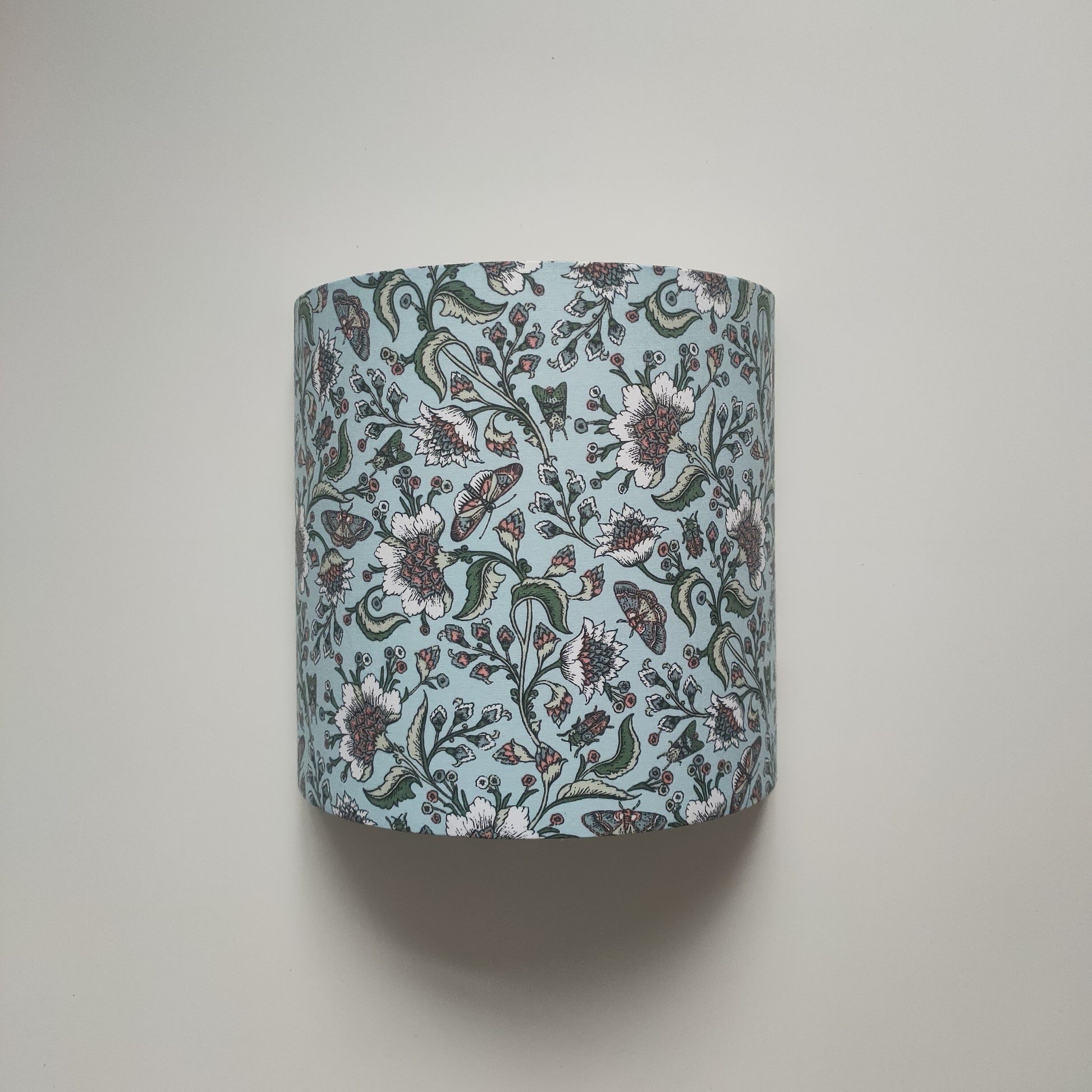 • Tissu en 100 % coton imprimé certifié OEKO-TEX Fleurs indienne sur fond bleu ciel